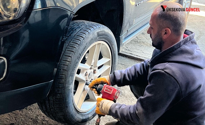 Yüksekova ilçesinde zorunlu kış lastiği uygulamasının sona ermesi ve havaların ısınmasıyla birlikte oto lastikçilerde yoğunluk yaşanmaya başlandı.