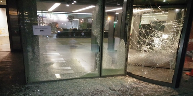Daha sonra çok sayıda kişinin polis engelini aşarak döner kapıya doğru ilerlediği ve içeri girmelerinin son anda engellendiği belirtilirken taş ve sopalar ile binaya hasar verildiği aktarıldı.