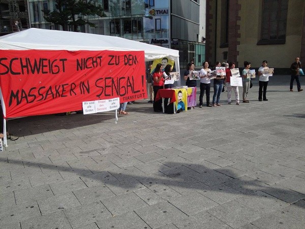 Frankfurt’ta ise Amara Kadın Meclisi iki günlük çadır eylemi gerçekleştirdi. Hauptwache’de saat 15:00’da kurulan nöbet çadırına “Şengal’deki katliama sessiz kalmayın” pankartı asıldı.