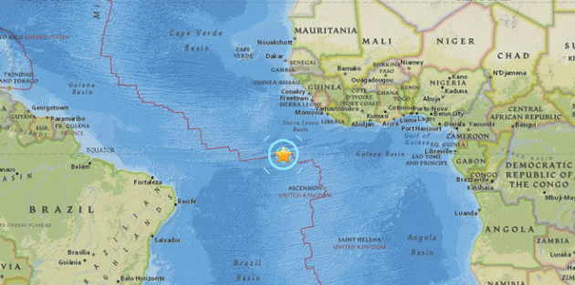Deprem, Ascension Adası’nın 974 kilometre kuzeybatısında yaşandı.