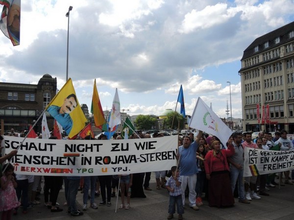 HANNOVER: Almanya’nın Hannover kentindeki yürüyüş ise Cuma günü gerçekleşti. Kobanê’deki saldırıları kınamak ve Rojava devrimini sahiplenmek amacıyla yapılan yürüyüşte bine yakın kişi katıldı. Hannover Demokratik Toplum Merkezi’nin çağrısıyla yapılan yürüyüşe Almanca “Türkiye finanse ediyor, IŞİD katlediyor” pankartı taşındı. Yürüyüşe Demokratik Güç Birliği bileşenlerinin yanı sıra Alman sol gruplar da katıldı.