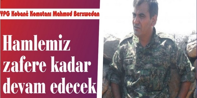 YPG Kobanê Komutanı Mahmud Berxwedan, başlattıkları Kobanê Kurtuluş Hamlesi’nin başarı ile devam ettiğini belirterek, “DAİŞ çeteleri hamlemiz karşısında çaresiz kaldı. Hamle zafere kadar devam edecek. Kobanê'nin gençleri zafer aşamasında yerini alsın” dedi.