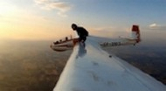 Polonya'da bir paraşütçü tek motorlu uçağıyla havada yaptığı tehlikeli hareketle izleyenlerin yüreğini ağza getirdi. Çılgın paraşütçü uçağın koltuğundan ayrılıyor ve kanadında oturuyor ve kendini aşağı bıraktı.