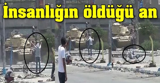 Kahire'de darbe karşıtı gösteriler sırasında tankların önünde durarak tankların ilerlememesi için çağrıda bulunan silahsız bir göstericiye gözü dönmüş askerler kurşun yağdırdı.