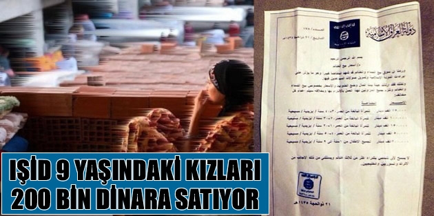 Irak'ta öldürülen IŞİD'in 'emir' statüsünü verdiği üst düzey bir yöneticisinin üzerinden çıkan ve örgütün mührünün bulunduğu belgede, IŞİD tarafından bir pazar kurulduğu, burada Hıristiyan ve şeytana tapan kadınların satıldığının yazıldığı belirtildi.