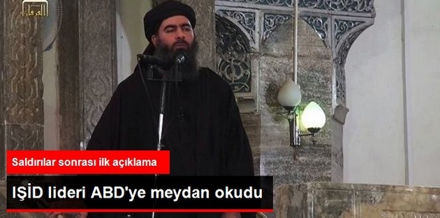 ABD cephesinde bu gelişmeler yaşanırken, IŞİD lideri Ebubekir el-Bağdadi yayınladığı ses kaydında tehditler savurdu. Kayıtta Bağdadi, ABD'ye meydan okuduğu mesajda şu ifadeleri kullandı: "Bu mesajım Amerika'ya, Hıristiyanların haç taşıyıcılarınadır. Beni dinleyin. Sizin adınıza savaşanlar size Irak ve Suriye'de hiçbir şey kazandırmayacak. Çok yakında kendinizi 'İslam'ın oğullarının' doğrudan karşısında bulacaksınız. Ki onlar sizinle savaşmak için kendilerini iyi hazırladılar."