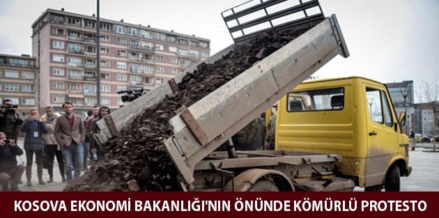 Kosova Ekonomi Bakanlığı'nın önünde kömürlü protesto