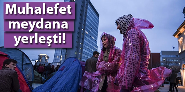 Priştine'de hükümetin istifası için Başbakanlık ve meclis binaları önünde toplanan üç partinin önderliğindeki muhalif göstericiler, bina önünde çadırlar kurarak geceyi geçirdi.