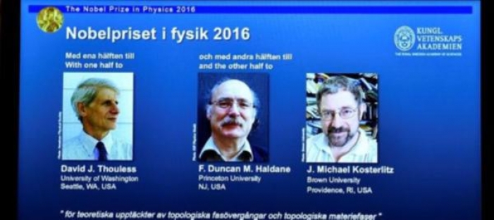 Nobel Komitesi, topolojik evre değişimlerin ve maddenin topolojik evrelerinin kuramsal keşfine" yaptıkları katkılar nedeniyle David J. Thouless, F. Duncan M. Haldane ve J. Michael Kosterlitz'in bu yılki Nobel Fizik Ödülü'ne layık görüldüklerini açıkladı.