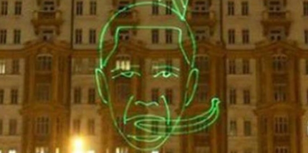 Rus milliyetçiler, ABD'nin Moskova'daki büyükelçilik binasına lazerle Obama'nın görüntüsünü yansıttı. Irkçı görüntüde Obama, muz yerken görülüyor.