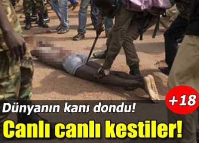 Seleka kabilesinden olduğu gerekçesiyle askerler tarafından linç edilerek öldürülen adamı gözü dönmüş kalabalık önce soydu ardından, parçalara ayırdı ve sonra da yaktı.