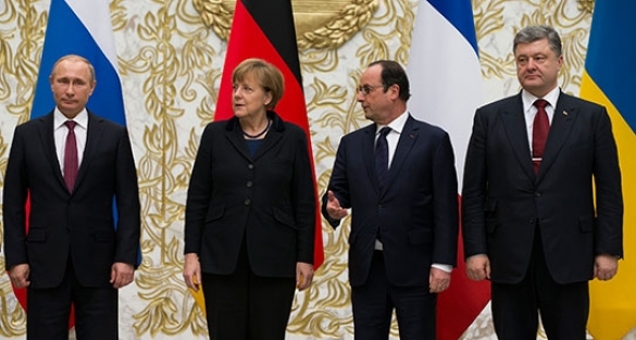 Rusya Devlet Başkanı Vladimir Putin, Almanya Şansölyesi Angela Merkel, Fransa Cumhurbaşkanı François Hollande ve Ukrayna Cumhurbaşkanı Petro Poroşenko’nun katılımıyla gerçekleştirilen Minsk’teki barış görüşmelerinden ateşkes kararı çıktı.