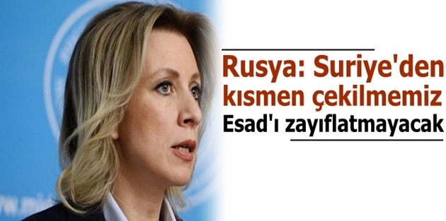 Rusya Dışişleri Bakanlığı Sözcüsü Mariya Zaharov, Suriye’deki güçlerinin ana bölümünü geri çekme kararı alan Rusya’nın bu kararla Suriye Devlet Başkanı Esad’ın pozisyonunu zayıflatıp zayıflatmadığı sorusuna, “Hayır” yanıtını verdi.