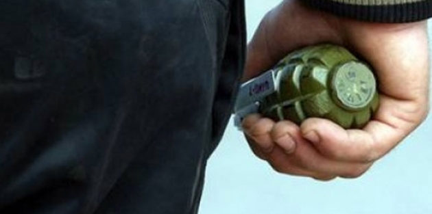 Tartıştığı eşine el bombası fırlattı