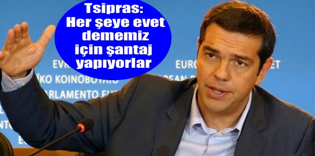 “Gelin hep birlikte parlak bir demokrasi ve daha iyi bir anlaşma için kesin bir umuda yelken açalım” diyen Tsipras, “Her şeye evet demeniz için size şantaj yapıyor, suç ortağı arıyorlar. Sandıktan hayır çıkması durumunda ülkeyi Euro’dan çıkarmak gibi gizli bir planımız da yok” dedi.