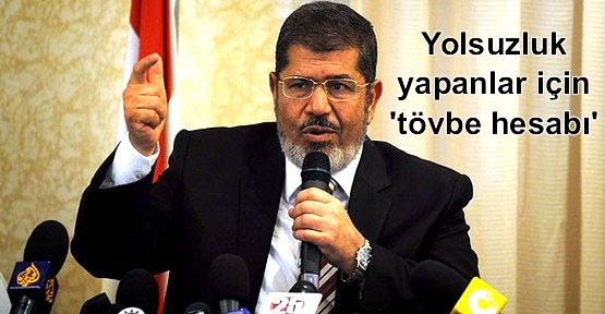 Mısır Cumhurbaşkanı Mursi, yolsuzluk yapıp pişman olanların, 'gasp ettiği hakları' iade etmeleri için banka hesabı açıldığını söyledi.