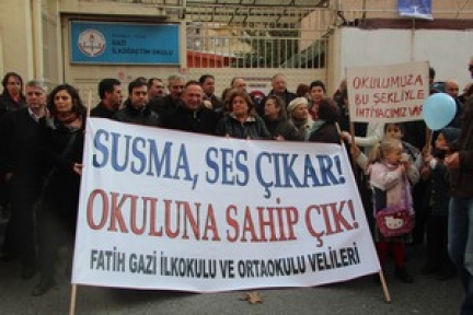 Fatih ilçesinde bulunan Gazi İlköğretim Okulu'nda okuyan öğrenci ve velileri, okullarının imam hatip ortaokuluna dönüştürülecek olmasına karşı okulun önünde basın açıklaması gerçekleştirdi. "Susma ses çıkar okuluna sahip çık" pankartını açan grup, "Eğitim en büyük haktır", "Okulumuza bu şekliyle ihtiyacımız var", "Okulumuz koruma altında" dövizlerini açtı. "Gazi bizimdir bizim kalacak" sloganlarını atan grup adına açıklama yapan öğrenci velisi Semra Kaya, okulları için aylardır ayakta olduklarını belirterek, şimdiye kadar kimsenin seslerine kulak vermediğini dile getirdi. Kış, yağmur ve soğuk dinlemeden veli, öğrenci, öğretmen ve mahalle sakinleri olarak eylemlerine devam edeceklerini vurgulayan Kaya, "Bizim kararlılığımızı test etmesinler. Ne kadar kararlı olduğumuzu, sonuna kadar mücadele ederek göstereceğiz" dedi.