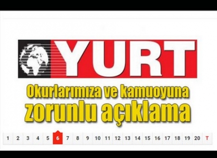 “Gazeteniz YURT, yaşanan mali sorunlar (personel, kağıt ve matbaa borçları) nedeniyle yarın sizlerle buluşamayacak. Yayınımıza bir gün ara veriyoruz. YURT 1 Temmuz’dan itibaren yeniden bayiilerde olacak. Bugüne kadar bizlerle dayanışma içinde olan siz değerli okurlarımızın kısa sürecek (1 gün) bu ayrılığı hoşgörüyle karşılayacağınızı umuyoruz. Yurt varsa umut da var.”
