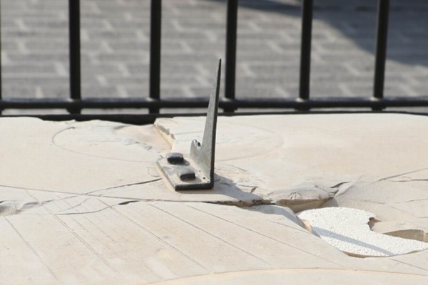 Mermeri üzerinde çatlaklıkların oluştuğu güneş saatinin, zarar görmemesi için etrafı demir çubuklarla çevrelenerek zarar görmesi engellenirken, bölge ziyaretçi akınına uğruyor.