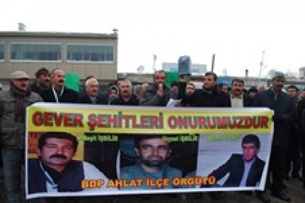 Bitlis'in Ahlat ilçesinde, Yüksekova'da 3 sivil yurttaşın polisler tarafından katledilmesi BDP İlçe Örgütü önünden çarşı merkezine yapılan yürüyüşle protesto edildi. Yürüyüşe BDP il, ilçe ve belde örgütleri, Güroymak Belediye Başkanı Mehmet Emin Özkan, MEYADER ve çok sayıda yurttaş katıldı. "Gever halkı yalnız değildir", "Bijî Serok Apo" ve "Şehîd namirin" sloganlarının atıldığı yürüyüşte, PKK Lideri Abdullah Öcalan'ın posteri ve yaşamını yitiren 3 yurttaşın fotoğraflarının bulunduğu pankart taşındı. Yürüyüşün ardından grup adına açıklama yapan MEYADER Temsilcisi Nihat Karababa, yaşanan olayların sürece zarar verebilecek nitelikte olduğuna dikkat çekerek, "Yapılanlar kabul edilemez. Kürt halkı artık kana, ölüme doymuştur. AKP hükümeti bu barış fırsatını kaçırmamalı, ciddi davranıp üzerine düşeni yapmalıdır" dedi. DİHA