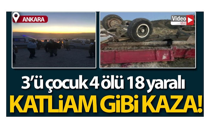 Ankara’nın Haymana ilçesinde piknikten dönen ailelerin bulunduğu traktör römorkun devrilmesi sonucu meydana gelen kazada 3’ü çocuk 4 kişi hayatını kaybetti, 18 kişi yaralandı.