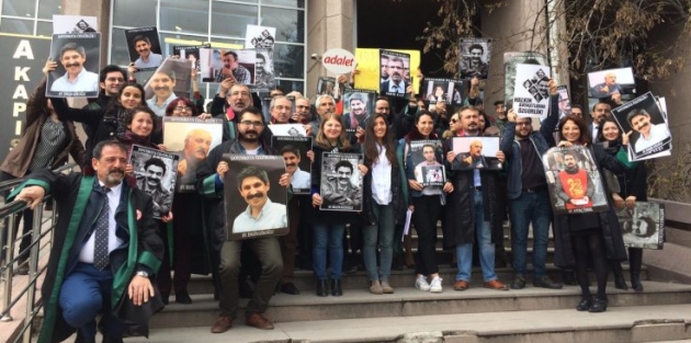 MESLEKTAŞLARMIZ İÇİN ADALET: Sokakta sade vatandaş, yeri geldiği zaman oyunu çaldırmamak için oy çuvallarının başında sabahlayan seçmen, trafiğin neden kapalı olduğunu sorduğu için polislerce iki saat boyunca işkence yapılan vatandaş, gözlerimizin önünde öldürülen barış elçisi Tahir, 10 Ekim’de katledilen Uygar, sesini kısmak için dünya hukuksuzluk tarihine geçen tiyatrodan bozma bir yargılamanın yapıldığı Selçuk, sistematik bir cinayetle intihar süsü verilen Gökhan Vural, adliyelerde sürüklenen isimsiz onlarca meslektaş ve meşrulaştırılmış bir karanlığın cübbelerinden deliler gibi korktuğu adalet üzerine yemin etmiş hukuk muhafızlarıyız.