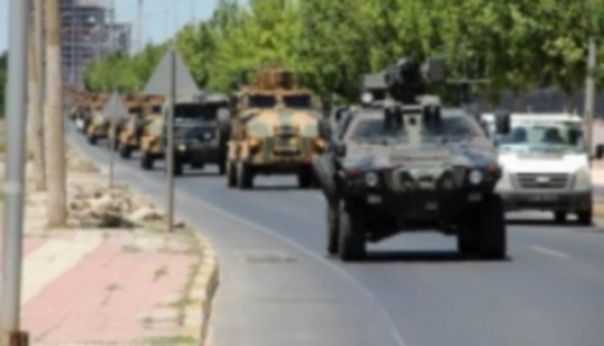 Suriye’de yaşanan askeri hareketlilik Diyarbakır’a da yansıdı. Önceki gün Diyarbakır Gar’ında yapılan askeri sevkiyatın ardından bu kez kara hareketliliği yaşandı. Öğlen saatlerinde mayına dayanıklı 'Kirpi' diye tabir edilen 40 askeri personel aracı Şanlıurfa-Diyarbakır karayolundan şehir merkezine doğru hareket etti. Askeri araçların geçtiği güzergahlar, trafik polisleri tarafından sivil araç trafiğine kapatılırken, konvoya polis ekipleri eşlik etti.