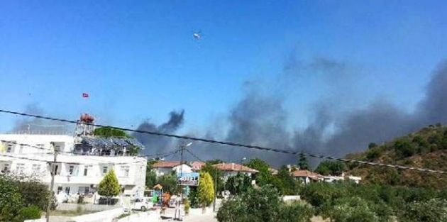 Zeytinliklerin yanı sıra üzüm bağlarının da zarar gördüğü yangının söndürülmesi için ekipler çalışmalarını aralıksız sürdürüyor. /