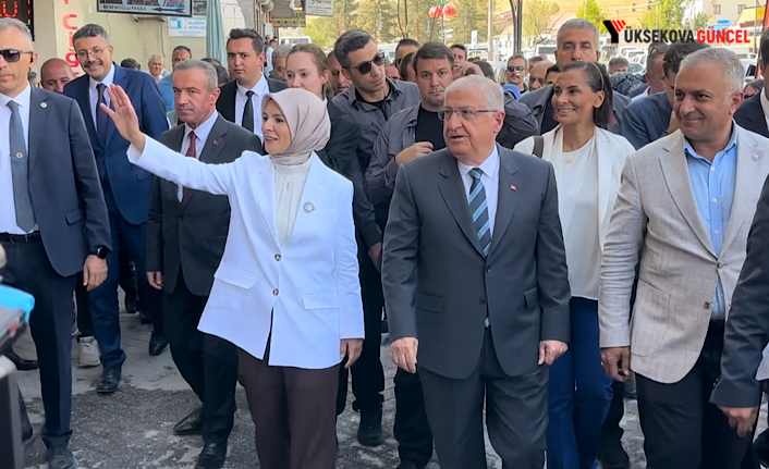 Milli Savunma Bakanı Yaşar Güler ile Aile ve Sosyal Politikalar Bakanı Mahinur Özdemir Göktaş, Yüksekova ilçe merkezinde esnafı ziyaret etti.