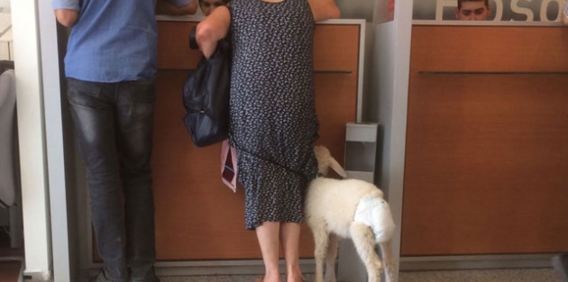 Ereğli'de oturan Mehmet Saygılı, Göztepe mevkiinde yürüyüş yaptığı sırada kanlı ve yaralı halde kuzu buldu. Çevrede araştırma yapmasına rağmen sahibini bulamayan Saygılı, kuzuyu eve getirdi. Ardında da kuzunun tedavisini yaptırıp, beslemeye başladı. Saygılı'nın eşi Müessire Saygılı da, kuzu ile birlikte dün bir bankaya gelerek işlem yaptırdı. Çevreyi kirletmemesi için çocuk bezi bağlı olan kuzu, çevredekiler tarafından görüntülendi. Eşinin kuzuyu bulduğunu anlatan Müessire Saygılı, bankaya hem işlem yapmak hem de bir arkadaşı ziyarete geldiğini söyledi./DHA