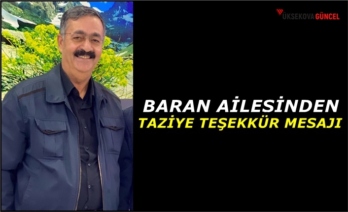 Yüksekova ilçesinde geçtiğimiz günlerde vefat eden Baran ailesinin Büyüklerinden A.Vahit Baran vefatı nedeniyle ailesi taziye teşekkür mesajı yayınladı.