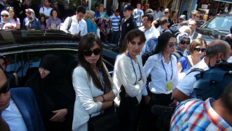 Ancak kadın polisler bir mağazaya girerek kendilerine yeni başörtüsü aldı. Başbakan Erdoğan, Cuma namazını kılarken kadın polisler de makam aracının önünde bekledi.