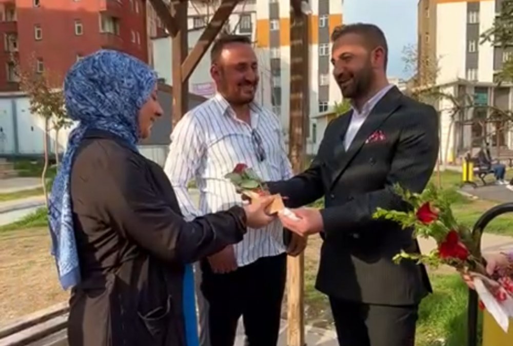 İlçenin farklı noktalarında çalışan, yürüyen veya servis araçlarında seyahat eden tüm kadınlara kırmızı güller takdim eden Akkurt, annelerin toplumdaki önemine vurgu yaptı.