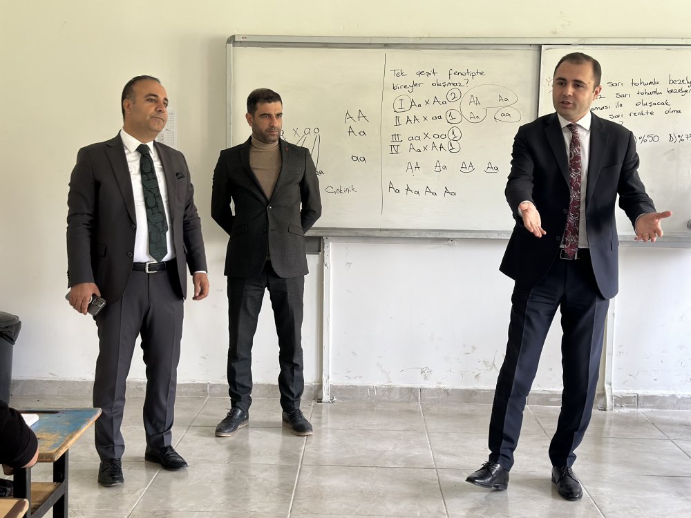 Beldeye giden İlçe Milli Eğitim Müdürü Kadir Çetin, Şube Müdürü Adem Özmen’le beraber ilk olarak Başkan Çayan Çiçek’i makamında ziyaret etti.