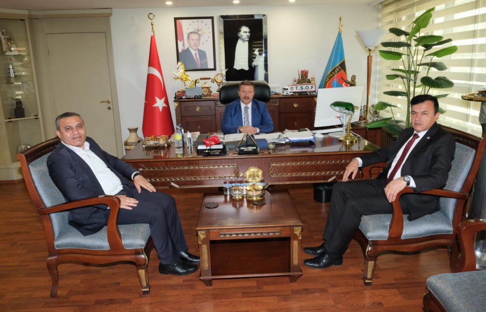 Hakkari Şoförler Odası Başkanı Abdi Arslan ile Yüksekova Şoförler ve Otomobilciler Odası Başkanı Selami Durna, TŞOF Genel Başkanı Yiğiner'e ziyaret etti.