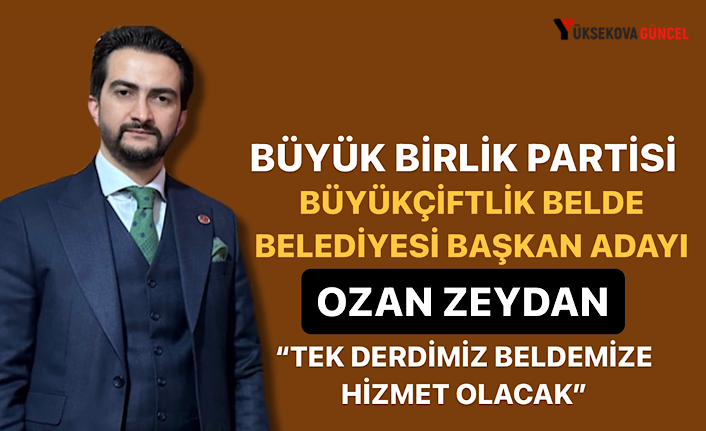 Büyük Birlik Partisi (BBP) Yüksekova Büyükçiftlik (Xırvate) Belde Belediyesi Başkanı Adayı Ozan Zeydan: “Tek Derdimiz Beldemize Hizmet Olacak” diyerek vaatlerini açıkladı.