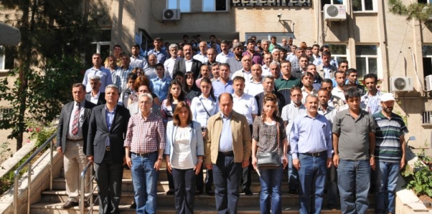 Soma'da 280'den fazla maden işçisinin yaşamını yitirmesi Amed'in Kayapınar ve Yenişehir ilçe Belediyeleri çalışanları tarafından protesto edilerek saygı duruşunda bulunuldu.