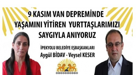 İpekyolu Belediyesi Eş Başkanları Aygül Bidav ve Veysel Keser, 9 Kasım 2011’de meydana gelen 5,6 büyüklüğündeki depremin yıldönümü nedeniyle bir mesaj yayınladı.