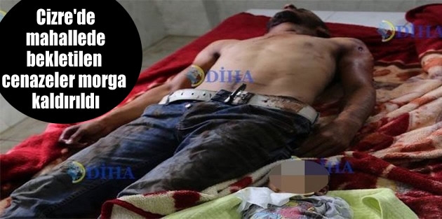 Cizre'nin Nur Mahallesi'nde polislerce öldürülen Sait Çağdavul ve polisin ambulansı engellemesi nedeniyle yaşamını yitiren 35 günlük Muhammed Tahir Yaramış isimli bebek ile Cudi Mahallesi'nde keskin nişancılarca öldürülen Cemile Çağırga'nın cenazeleri bekletildikleri camiden Cizre Devlet Hastanesi morguna kaldırıldı.