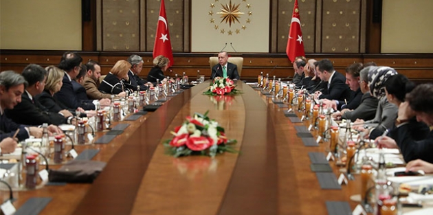 Cumhurbaşkanı Recep Tayyip Erdoğan, Cumhurbaşkanlığı Külliyesi'nde, ABD’li şirketlerin yöneticilerini kabul etti./DHA