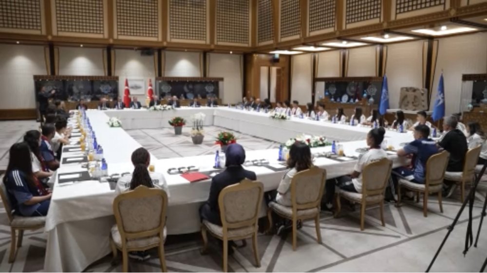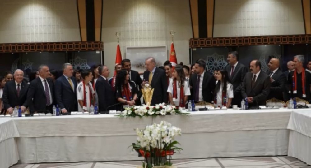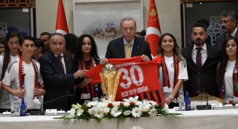 Cumhurbaşkanı Recep Tayyip Erdoğan, üst üste iki kez şampiyonluk yaşayarak (TFF) Kadın Futbol Süper Ligi'ne yükselen Yüksekovaspor Kadın Futbol Takımı'nı Cumhurbaşkanlığı Külliyesi'nde ağırladı.