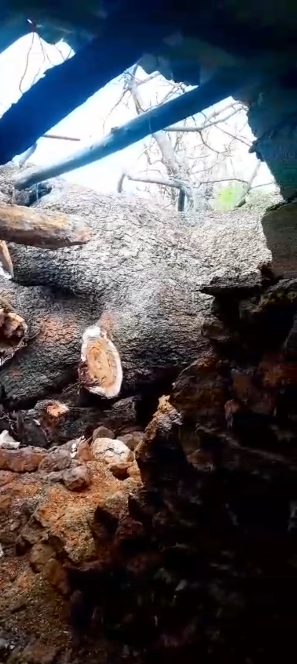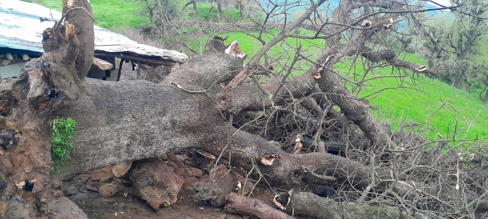 Yamaçtan kayan ağaç, İzzettin Ekinci’ye ait küçükbaş hayvan ağılının üzerine devrildi.