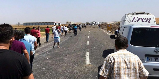 Çınar İlçesi’ne bağlı Başaklı Mahallesi yakınlarında saat 12.30’da meydana gelen patlamanın etkisiyle zırhlı araçlar yoldan tarlaya savruldu.