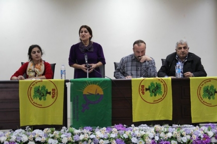 Diyarbakır'da 2014 yerel seçimleri için yarışacak olan belediye başkan adaylarını belirleyecek olan ön seçimlerde oy kullanacak delegelerin eğitim toplantıları başladı. BDP Diyarbakır İl Örgütü binasında başlayan toplantıların ilk oturumunda Bağlar ilçesine bağlı köylerde belirlenen delegelerle biraraya geldi. İkinci oturumda ise, Bağlar ilçesine bağlı Şehşamil, Mevlana Halid, 5 Nisan ve Selahattin Eyyubi mahallelerinde belirlenen delegeler ile toplantı yapıldı. Vedat Aydın Toplantı Salonu'nda gerçekleşen toplantıya il seçim komisyonu üyeleri ve 800'e yakın delege katıldı. Toplantıda 2014 yerel seçimlerinin Kürt halkı açısından önemi üzerinde durulurken, ilk kez bu seçimde uygulanacak olan ön seçimin tüm dünyaya örnek teşkil edecek bir model olduğuna dikkat çekildi. Toplantıda ön seçimlerde delegelerin nasıl oy kullanacağının yanı sıra aday belirleme kriterlerine ve ön seçimin nasıl olacağına dair bilgilendirme yapıldı. Toplantılar yarın da devam edecek./DİHA