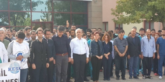 Hastane çalışanlarının tamamına yakının katılım sağladığı eyleme, tekerlekli sandalyelerle katılan hastalar dikkat çekti. Açıklamada “Katil devlet hesap verecek” sloganı atıldı. Sağlık emekçileri adına açıklama yapan Tabip Odası Başkanı Şehmus Gökalp, “Barışın hakim olduğu eşitliğin egemen olduğu bir ülkede yaşamak istiyoruz. Amed’de bu hastane önünde daha güzel gelişmeler için bir araya gelemedik uzun süredir. Coğrafyamızda kan gözyaşı durmak bilmiyor” dedi.