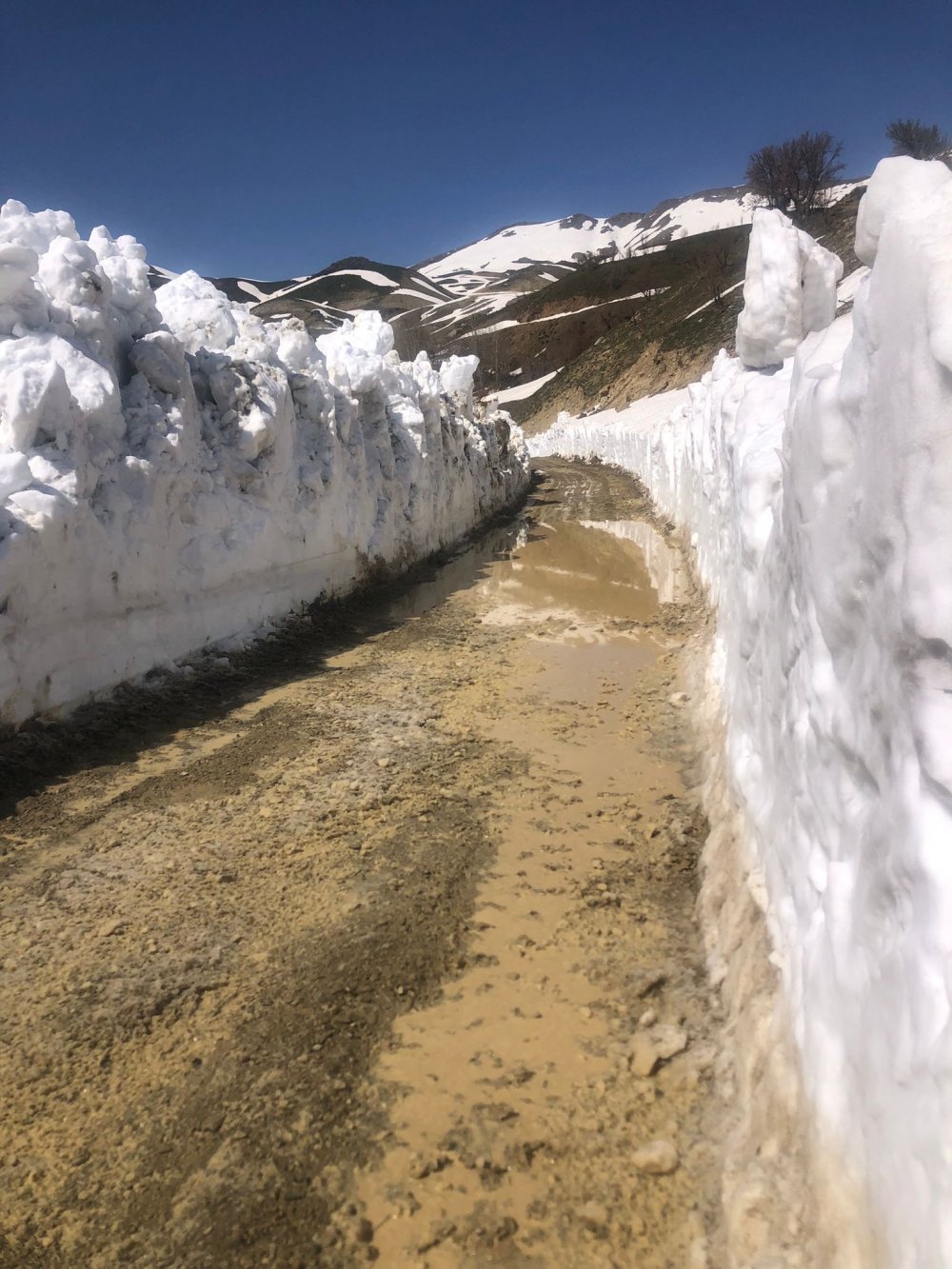 Hakkari'nin Yüksekova ilçesinde nisan ayına rağmen Doski Vadisi'nde yer alan Pınargözü köyünden Varkevik üs bölgesinin önceden kardan dolayı kapanan yolunda çalışma yapıldı.