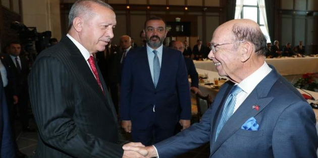 ABD Ticaret Bakanı Wilbur Ross, Türkiye’deki temaslarının beşinci gününde Beştepe’de Cumhurbaşkanı Tayyip Erdoğan’la görüştü. Erdoğan, ABD’nin YPG destek vermeye devam ettiğini söyleyerek, bu durumun kendilerini rahatsız ettiğini söyledi. Gülen’in iade edilmemesini de eleştiren Erdoğan, ekonomik ilişkilerde ise ticaret hacmini yükseltmekte kararlı olduklarını ifade etti.