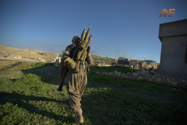 Şengal şehrinin üst tarafında yeni yapılmış beton evlerin içinden, çamurlu bir araba yolunu takip ederek, kadim kentin üst tarafında kalan tepedeki su depolarının altında bulunan evlere doğru yol alıyoruz. Yılmaz çamurlu araba yolunun sonunda bizi bir patikadan götürüyor. Yol boyu şehirden gelen yoğun silah seslerine kulak kabartıyoruz. Bir soluk daha harabeye dönmüş, kerpiç bir evin önünde bekliyoruz. Öncümüz Yılmaz; “Buradan koşarak tepeye çıkın, çünkü bu bölümde DAİŞ çeteleri suikast yapıyorlar” diyor ve Yılmaz sırtındaki B-7 silahı ve roketleri ile hızlı bir şekilde koşarak tepeye çıkıyor. Ardından bizler de koşarak kadim kent Şengal’in zirvesine ulaşıyoruz.