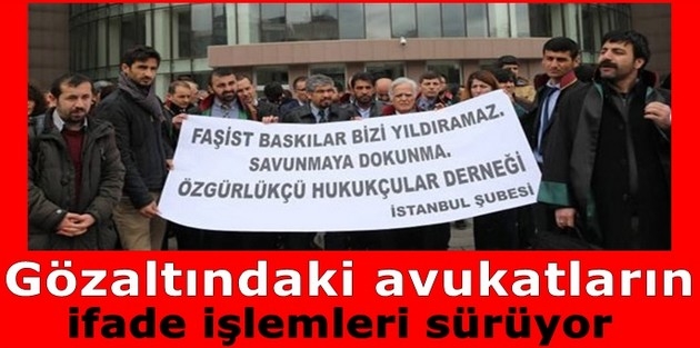 İstanbul'da polisin yaptığı ev baskınlarında gözaltına alınan Özgürlükçü Hukukçular Derneği (ÖHD) üyesi 9 avukatın da aralarında bulunduğu 29 kişinin savcılık ifadeleri gözaltında tutuldukları İstanbul Emniyet Müdürlüğü'nde dün başlamıştı. Aralarında soruşturmaya bakan savcının da bulunduğu 3 savcının, İstanbul Emniyet Müdürlüğü'ne gelerek başlattığı ifade işlemleri sürüyor.