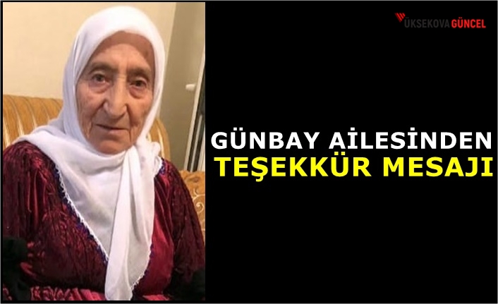 GÜNBAY AİLESİ MESAJINDA, "Değerli Aile Büyüğümüz Fatma Gübay'ın Vefatı Nedeniyle Bizleri Yalnız Bırakmayarak Acımızı Paylaşan Tüm Eş, Dost, Akraba ve Hemşehrilerimiz gerek cenaze törenine ve gerekse taziyemize gelerek veya telefonla arayarak bu acı günümüzde bizimle beraber oldular, acımızı paylaştılar… Uzaktan yakından cenazemize katılan, taziye ziyaretinde bulunan, mesaj gönderen, telefonla başsağlığı dileyen, internet aracılığı ile mesajını ileten, definden önce ve sonra taziyemize gelip acımızı paylaşan, tüm kanaat önderlerine, yerel yöneticilere, milletvekillerine, belediye başkanlarına, siyasi parti temsilcilerine, kurum amirlerine, mahalle muhtarlarına, gazetecilere, öğretmenlere, sağlıkçılara ve her zaman toplumumuzun öncülüğünde bulunan değerli imamlarımıza başta olmak üzere Türkiye'nin her yerinden dualarını esirgemeyen tüm akrabalarımıza, manevi desteklerini bizlerden esirgemeyen tüm değerli dostlarımıza şükranlarımızı sunarız. Taziye boyunca bizleri yalnız bırakmayan herkesin ölmüşlerine de Rabbimizden rahmet, herkese sağlık ve afiyet diliyoruz.''